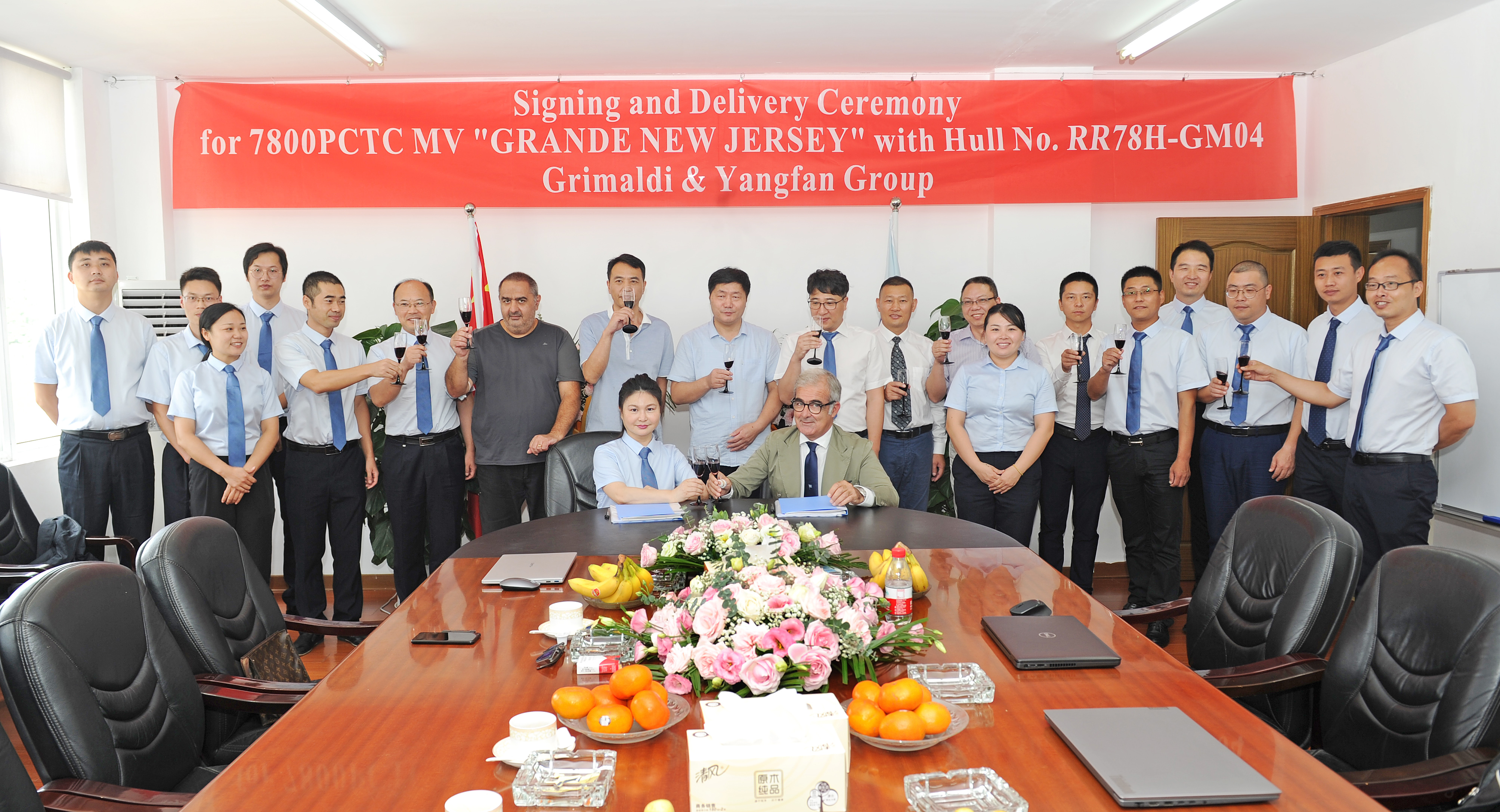 2020年9月2日,揚帆集團(tuán)股份有限公司下屬浙江東海岸船業(yè)有限公司承建的7800車位汽車運輸船(PCTC)系列船“GRANDE NEW JERSEY”號(GM04)正式簽字交付。該船從出塢到一次試航成功碼頭周期不到80天。船東對該船的各項性能指標(biāo)非常滿意。
