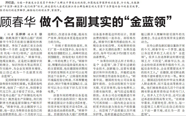《外經(jīng)貿(mào)信息》2013第12期:揚(yáng)帆集團(tuán)制定舟山船