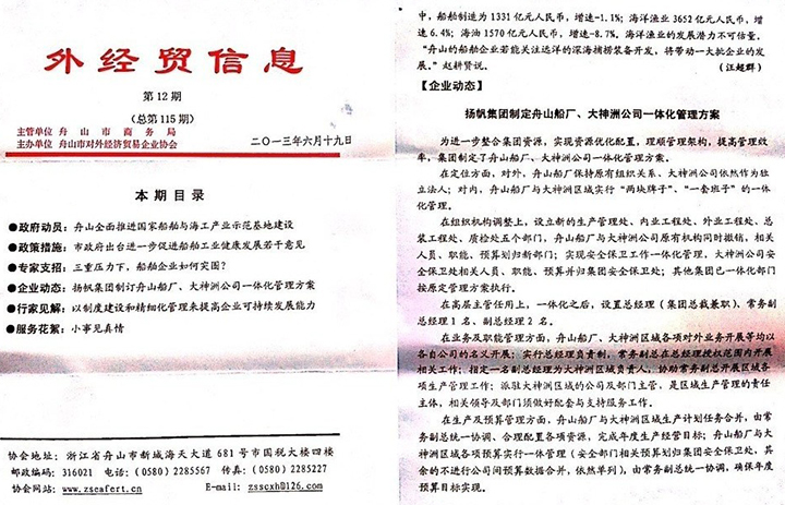 《外經(jīng)貿(mào)信息》2013第12期:揚帆集團(tuán)制定舟山船