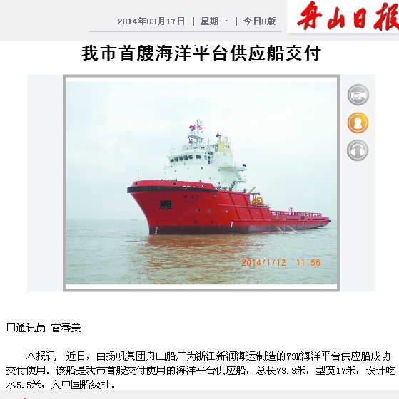 2014年3月17日《舟山日報》
